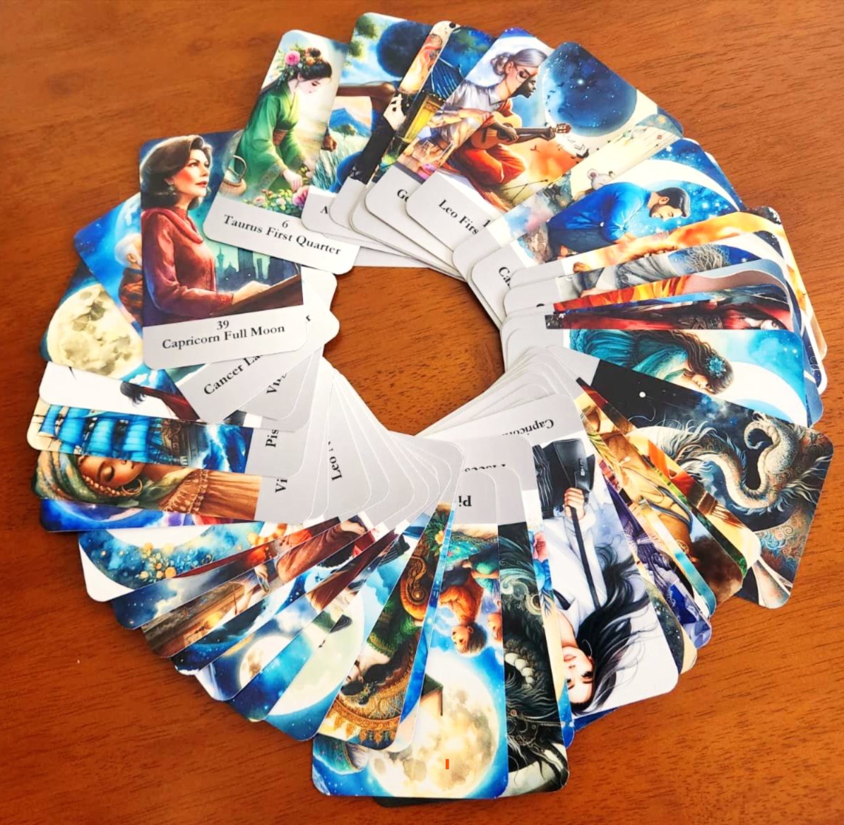"Heal the Moon" Deck is a 52-card oracle deck inspired by the phases of the Moon and the process of emotional healing. Designed for self-reflection, lunar rituals, and inner growth, each card represents a unique phase--from the raw beginnings of the New Moon to the action-oriented First Quarter, to the illuminating Full Moon, and the release of the Last Quarter phase.
