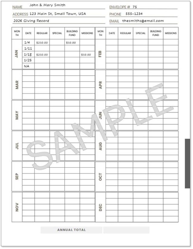 The only book you need to keep your small church's financial records for 12 months! This record book provides the resources for you to document: