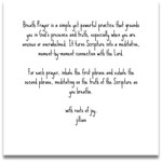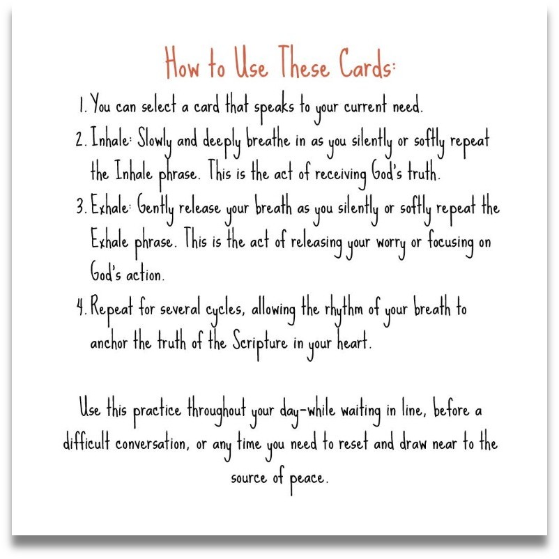 Breath Prayer is a simple yet powerful practice that grounds you in God's presence and truth, especially when you are anxious or overwhelmed. It turns Scripture into a meditative, moment-by-moment connection with the Lord.For each prayer, inhale the first phrase and exhale the second phrase, meditating on the truth of the Scripture as you breathe.
